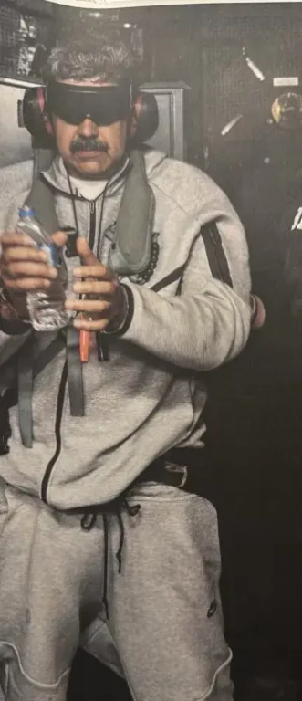 Em publicação na Truth Social, Trump compartilhou uma imagem que, segundo ele, mostra Maduro a bordo do navio USS Iwo Jima. A foto exibe um homem semelhante ao presidente venezuelano, com máscara nos olhos, fones de ouvido e um agasalho cinza.