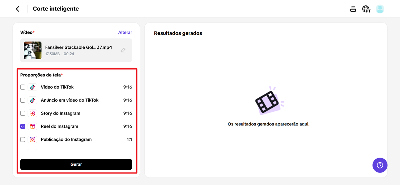 É aí que o corte automático com inteligência artificial entra em cena para salvar o dia. Em vez de arrastar, cortar e redimensionar manualmente, basta escolher as plataformas que você precisa e a ferramenta faz o resto – mantendo o sujeito centralizado e a narrativa intacta.
